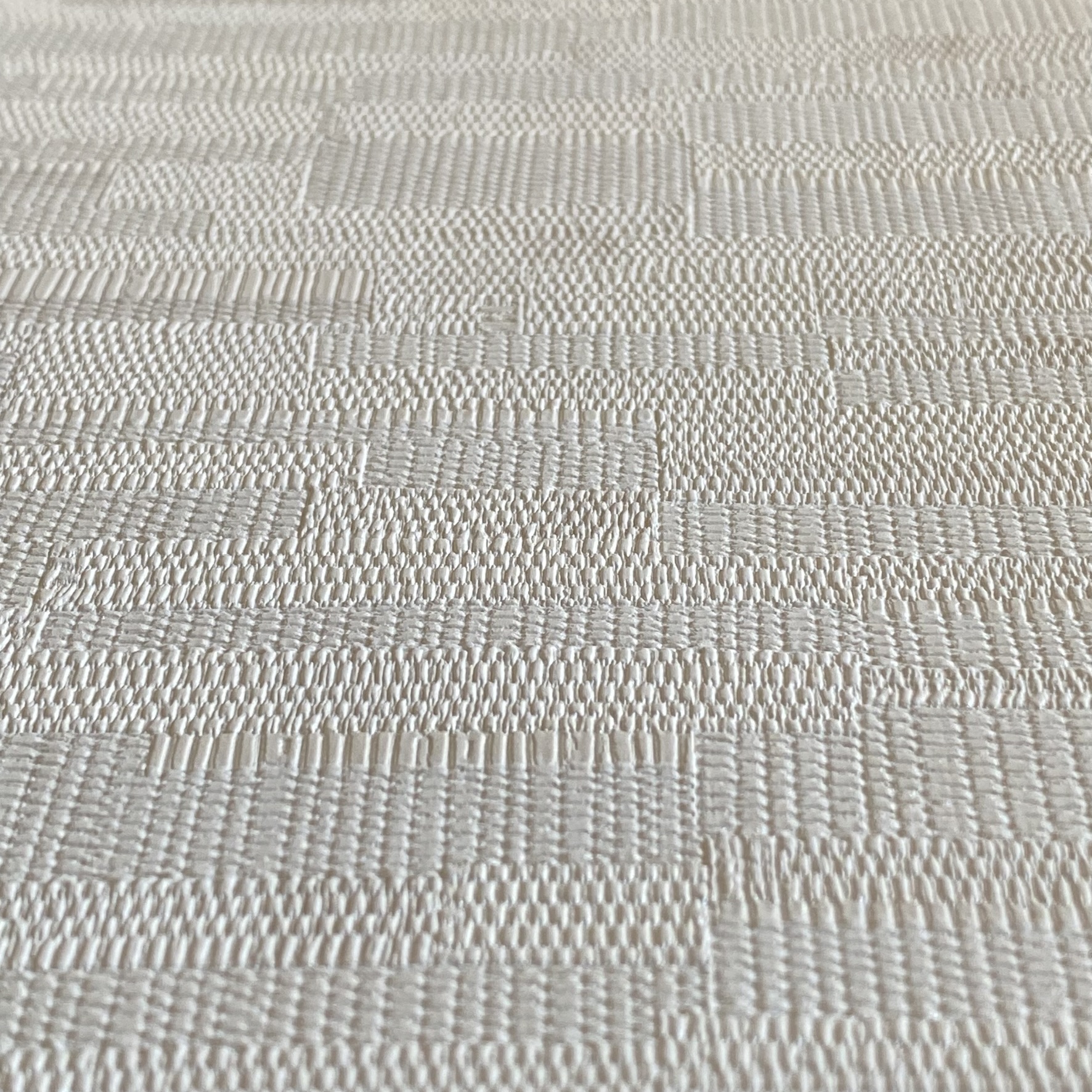 BELEM – un mosaico de hilos naturales fragmentados pero mezclados entre sí. Este diseño aporta profundidad y movimiento. En color blanco.