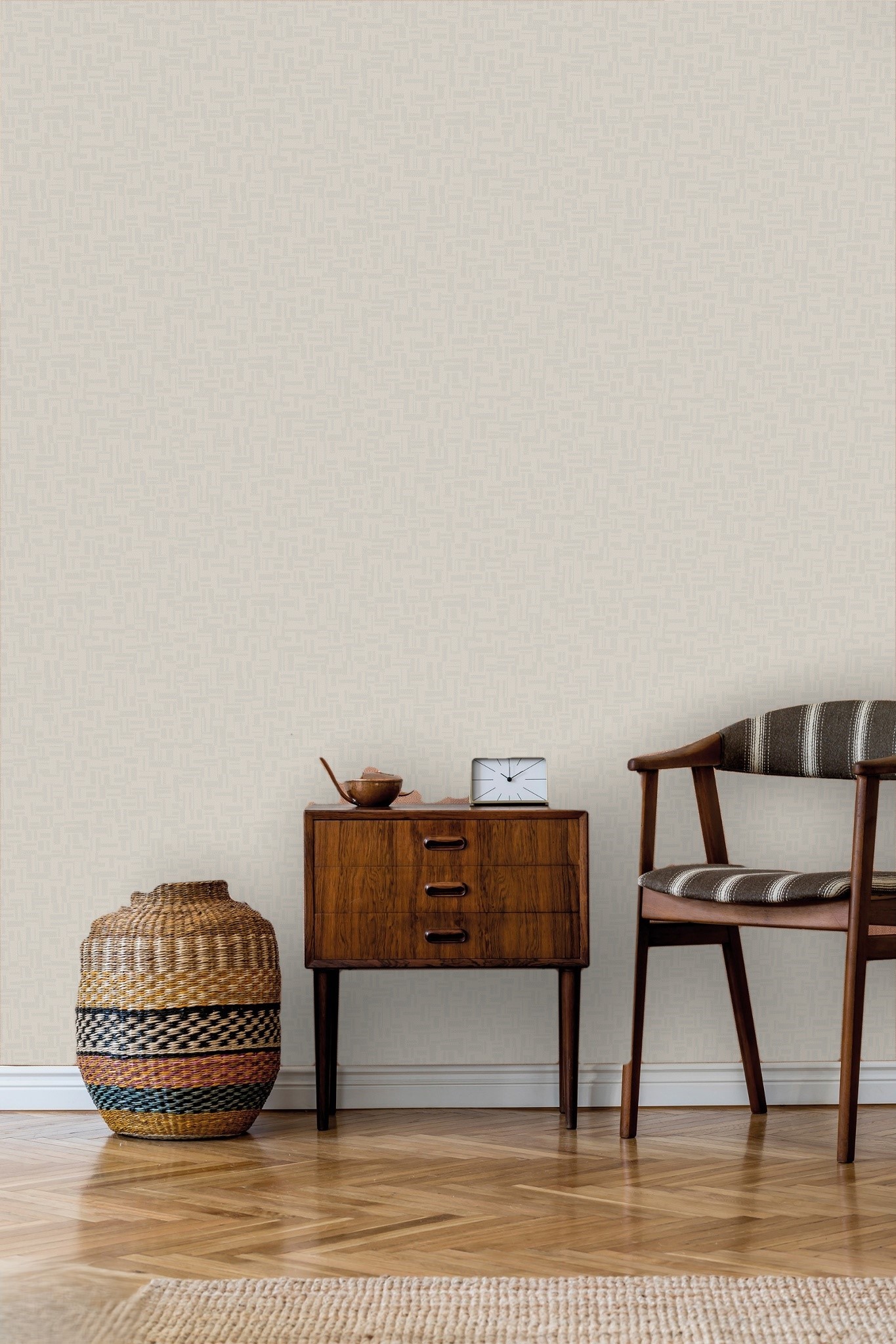 TWINKLE – Un patchwork chevron de inspiración textil que crea un efecto geométrico aportando profundidad a la habitación