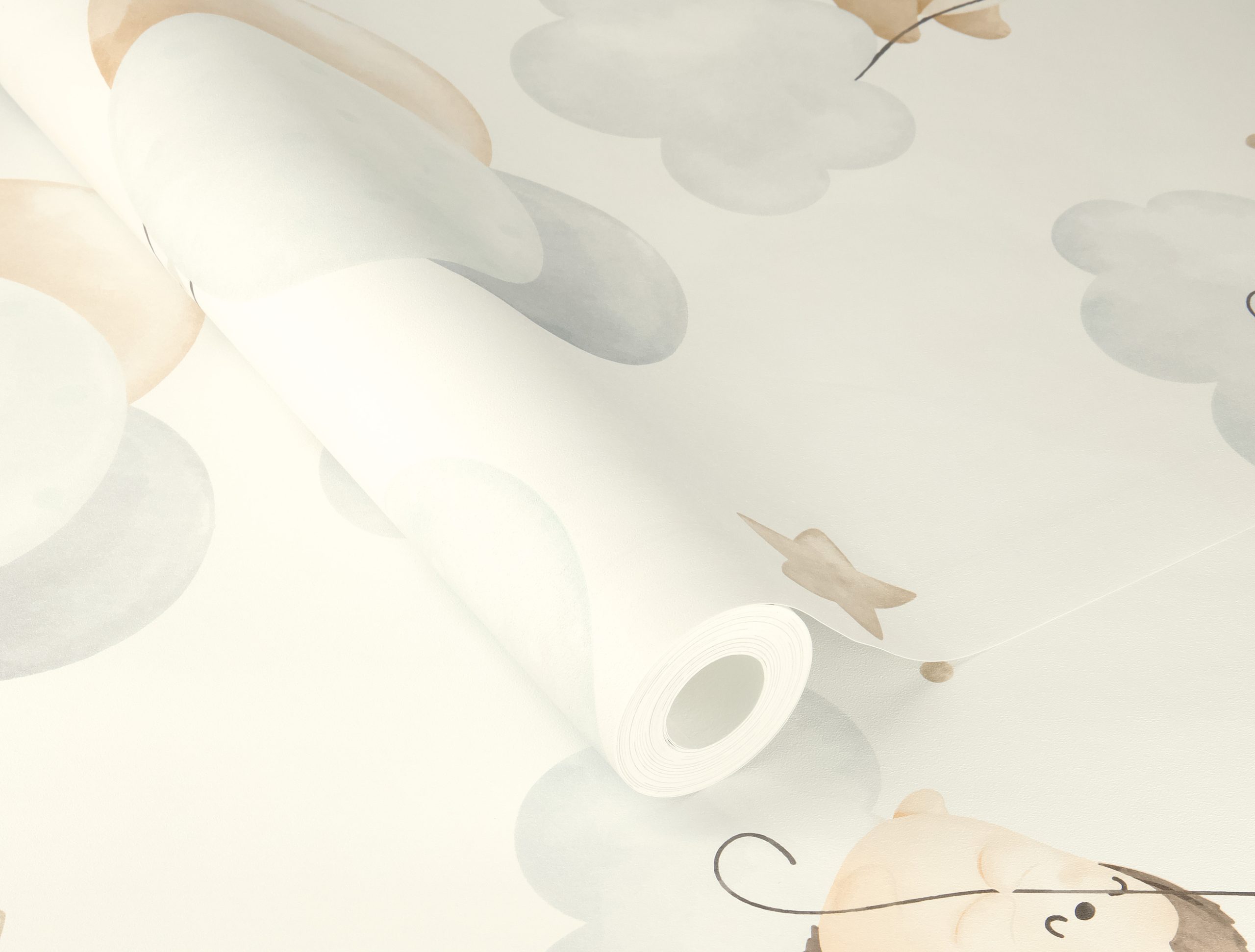 Papel mural diseño infantil de animalitos y tiernos globos.