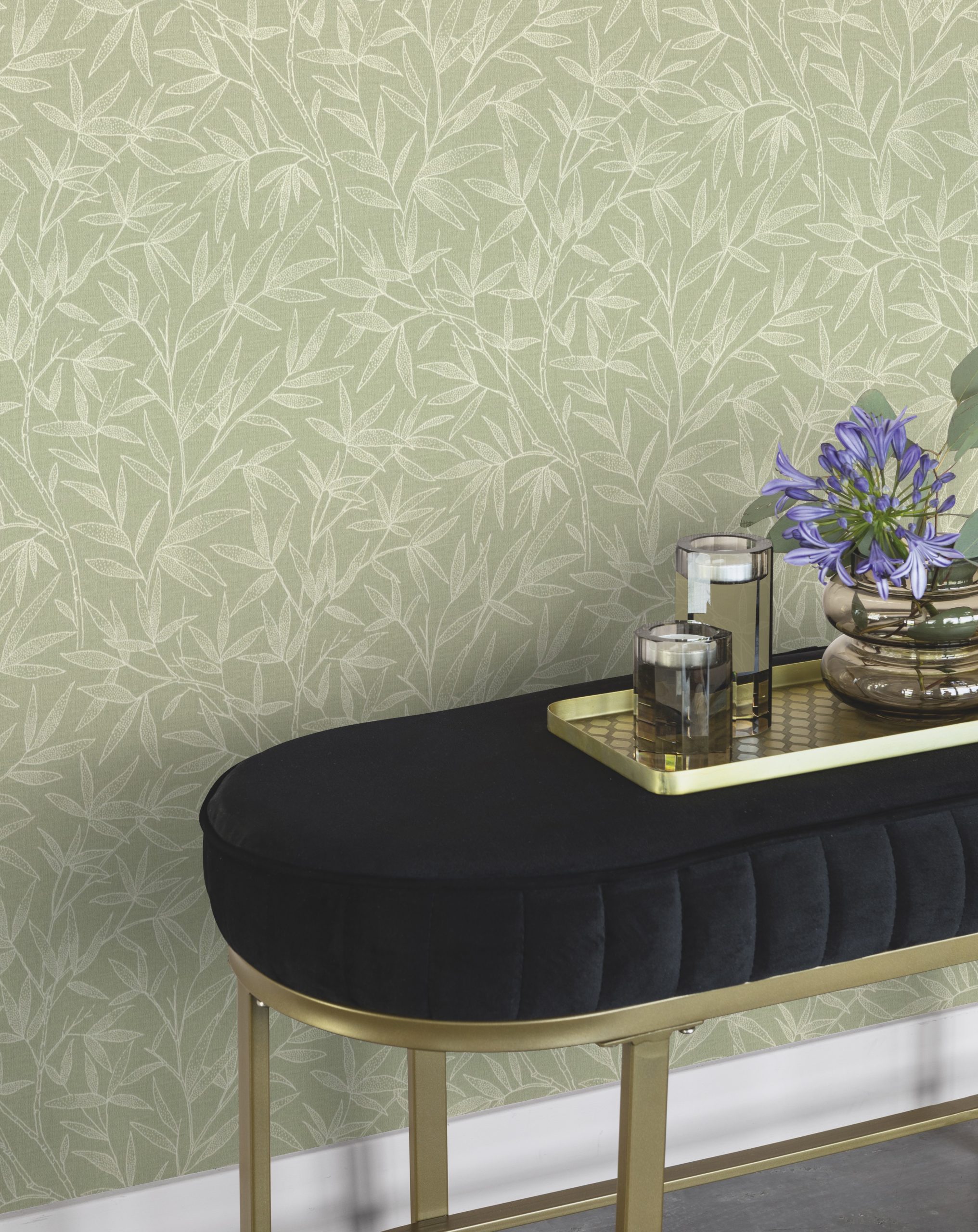 Papel mural con un diseño suave y relajante de delicadas ramas de bambú.