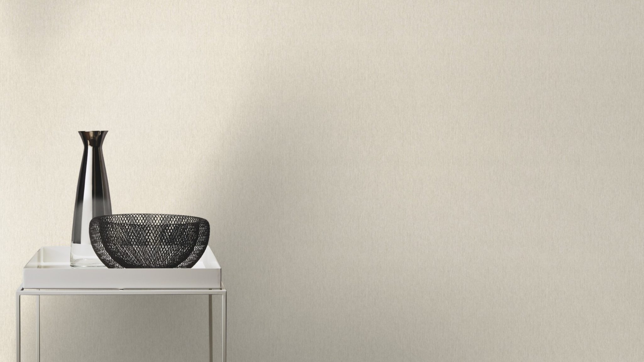 Este papel mural es liso metalizado color beige claro, tipo arena. El brillo aportará un aire moderno a cualquier espacio. La textura es un relieve de finas líneas que le da al papel un toque natural, ideal para combinar con madera, blanco fresco y materiales de estilo industrial.