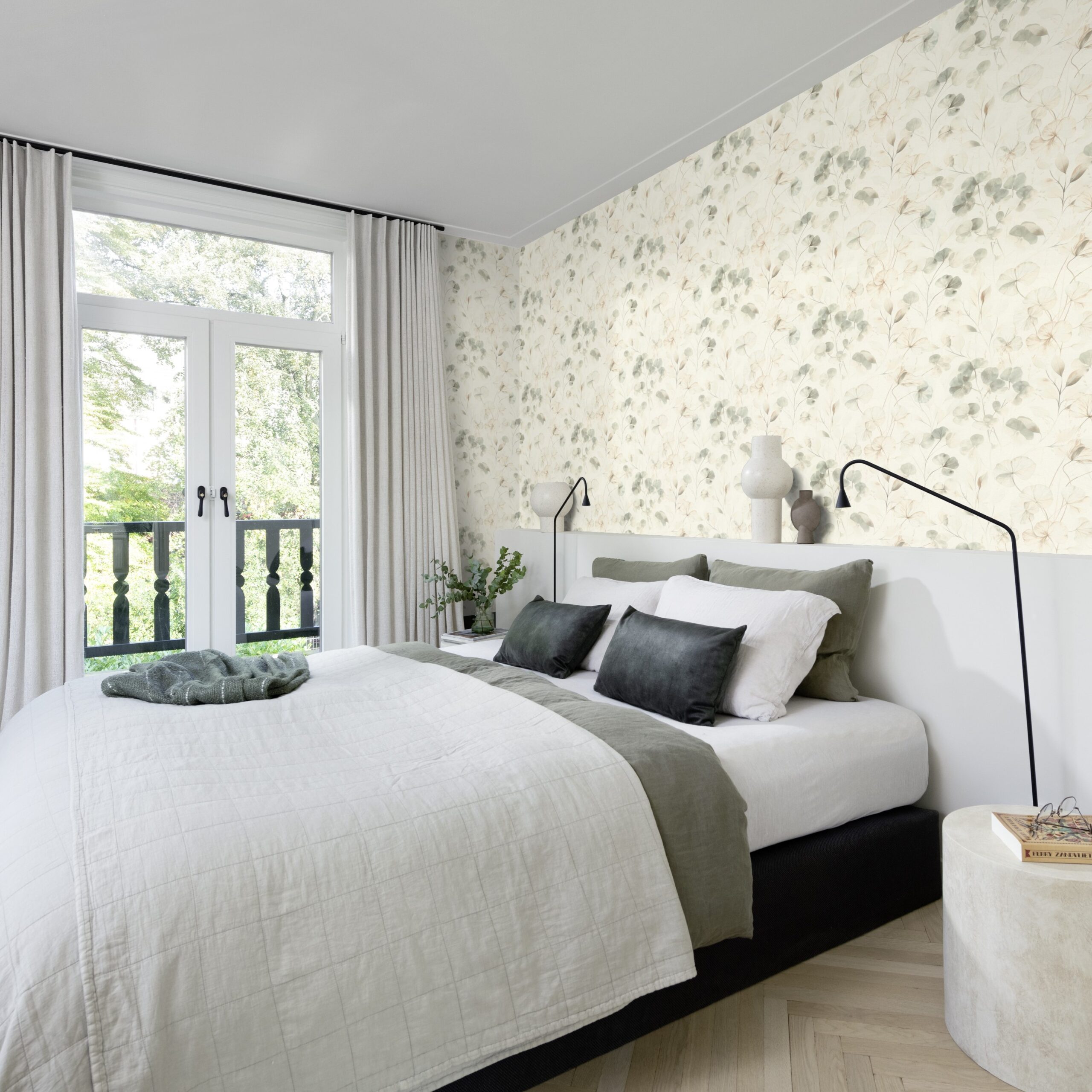 Papel mural con delicado diseño floral inspirado en el estilo campestre y escandinavo. Ideal para crear ambientes acogedores, luminosos y llenos de armonía.