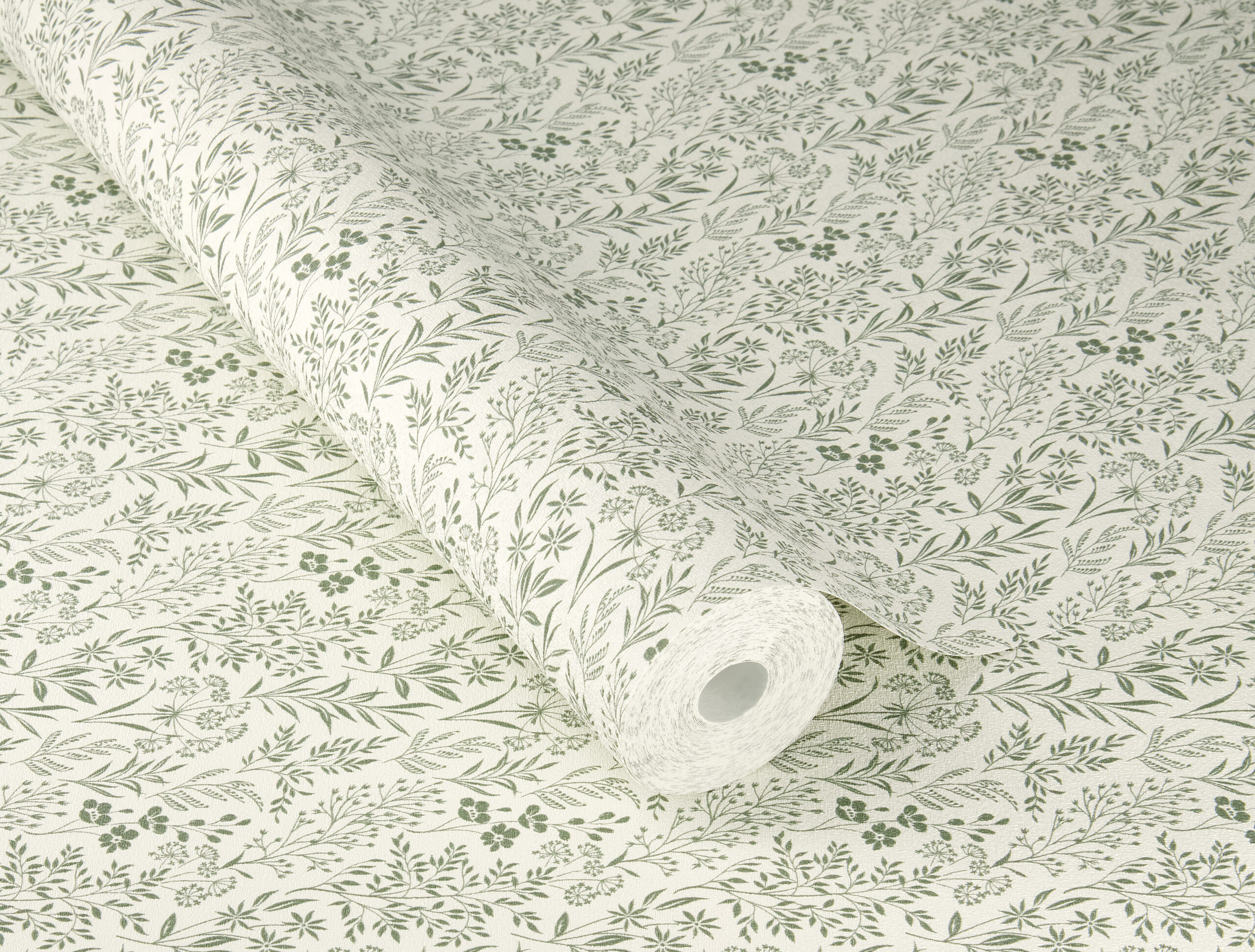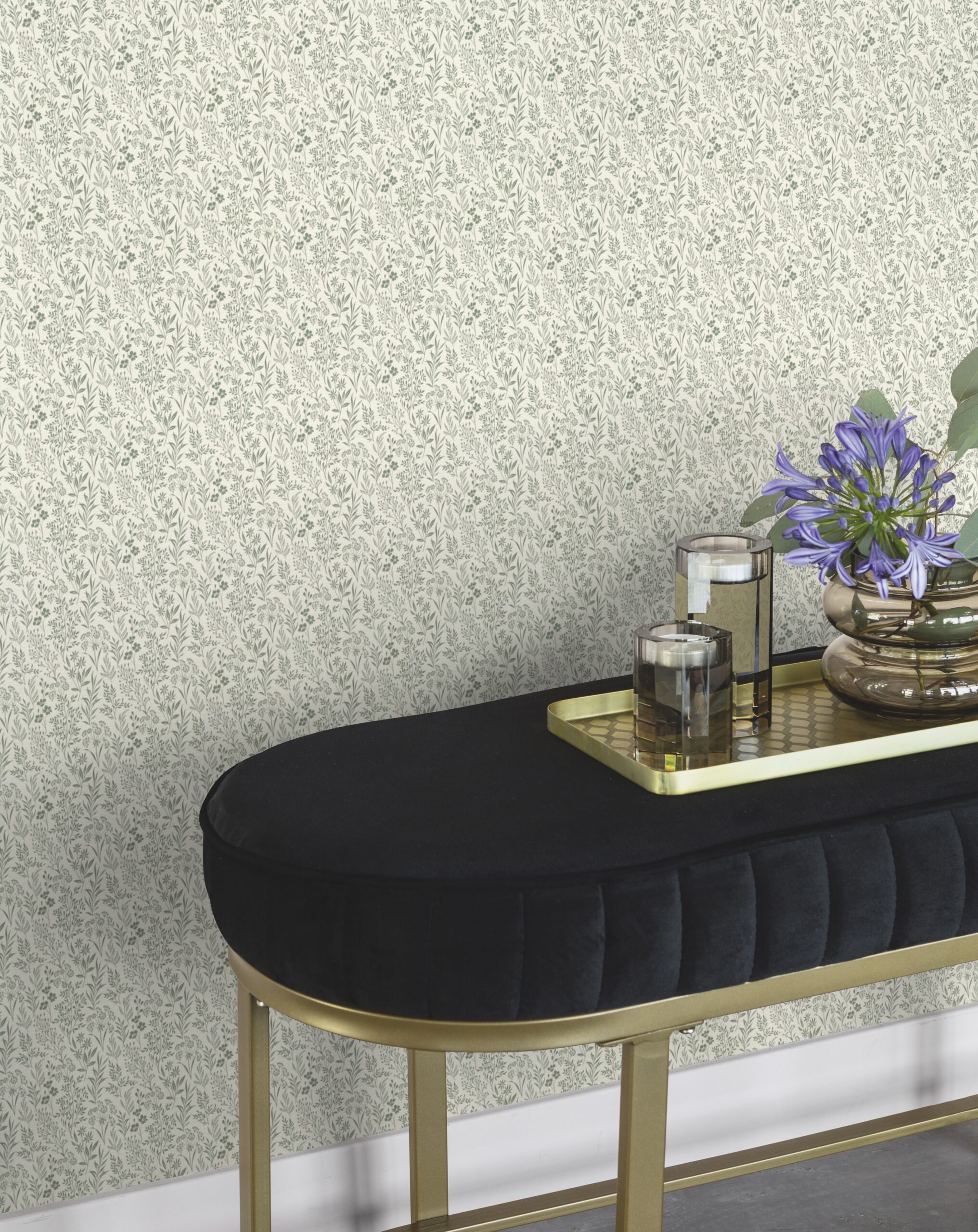 Papel mural con delicado diseño floral inspirado en el estilo campestre y escandinavo. Ideal para crear ambientes acogedores, luminosos y llenos de armonía.