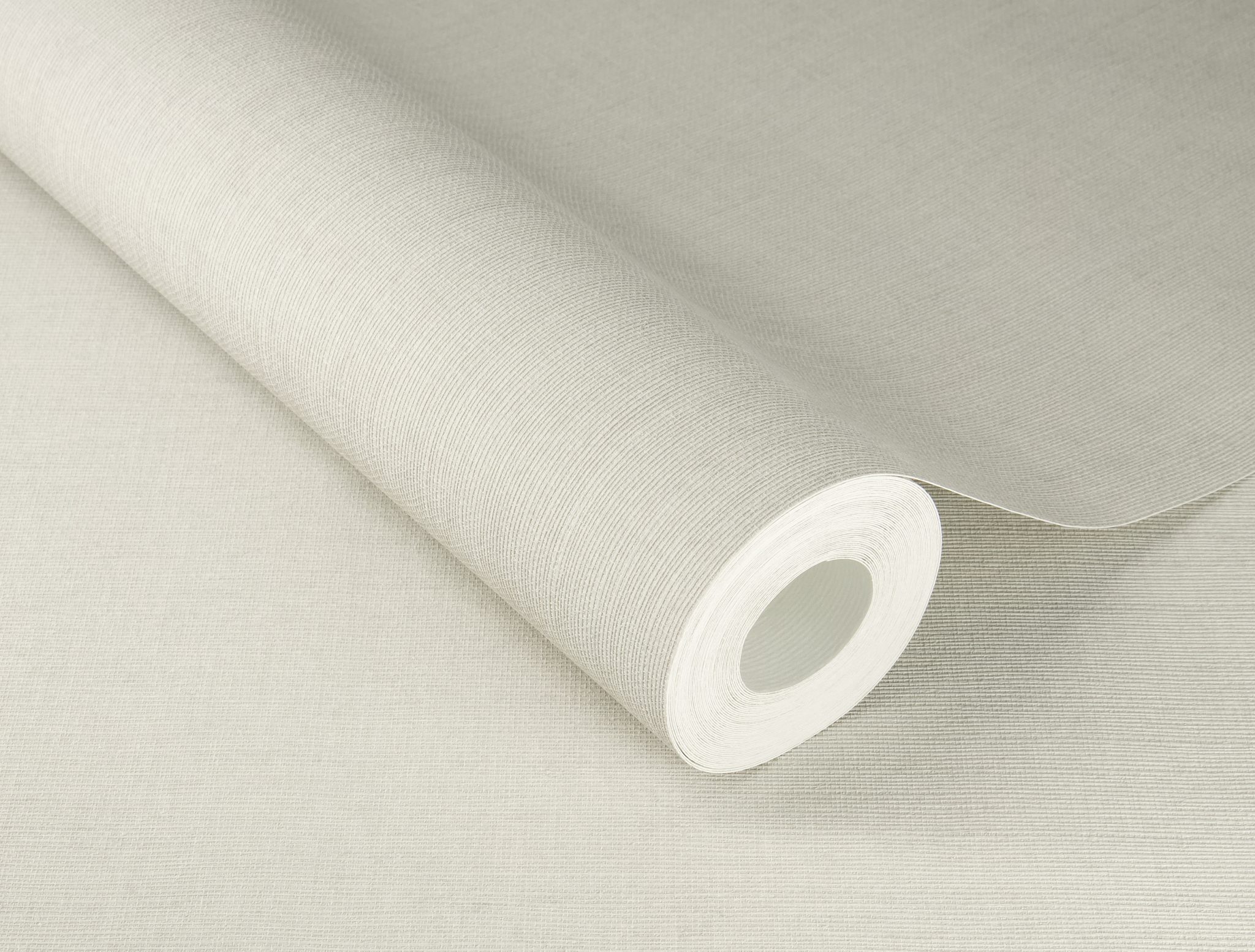 Este papel mural es liso en gris claro, con textura similar a la tela, es una base preciosa para el diseño de interiores.