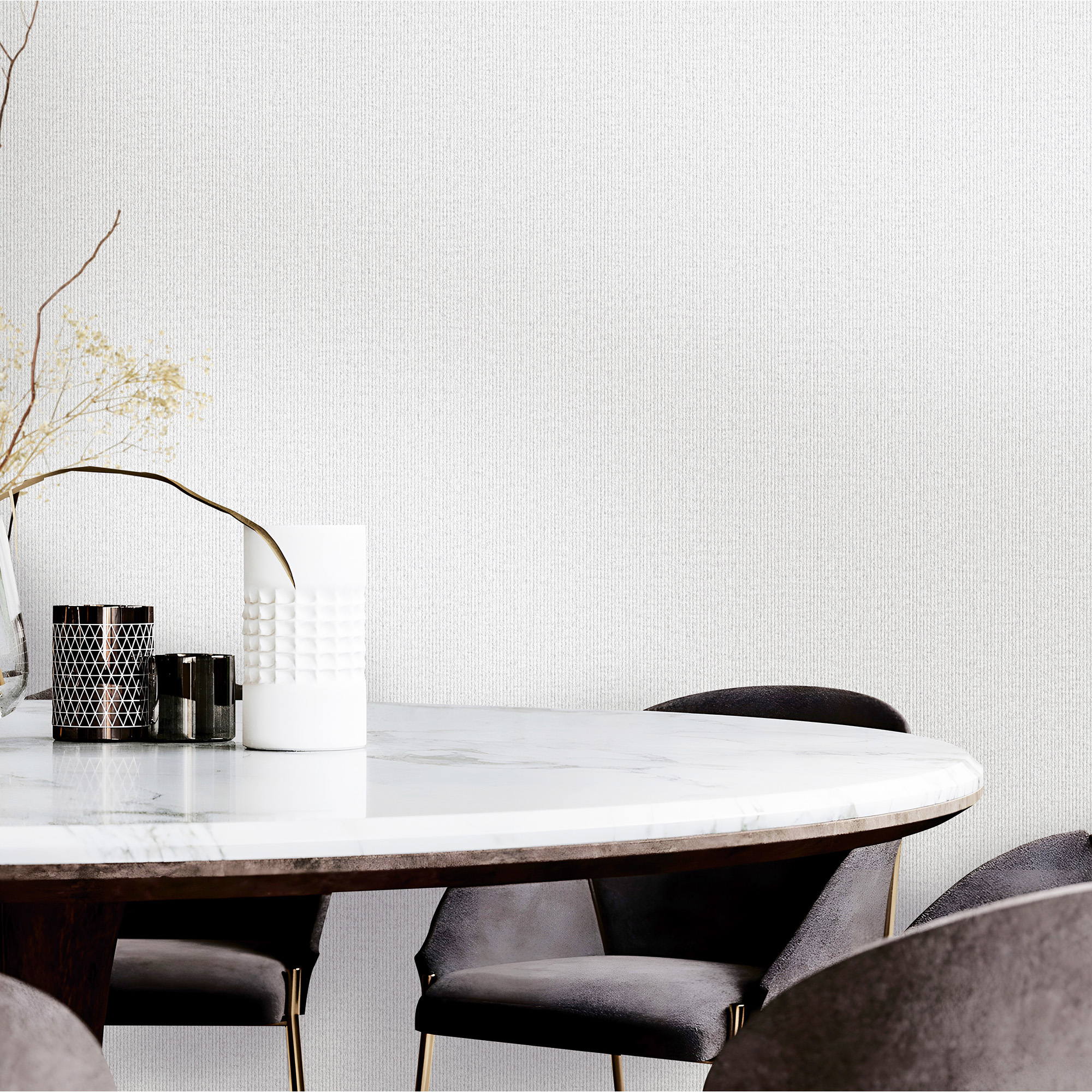Su acabado vinílico texturado aporta profundidad visual y un efecto táctil elegante, ideal para interiores que buscan una decoración sofisticada y acogedora.