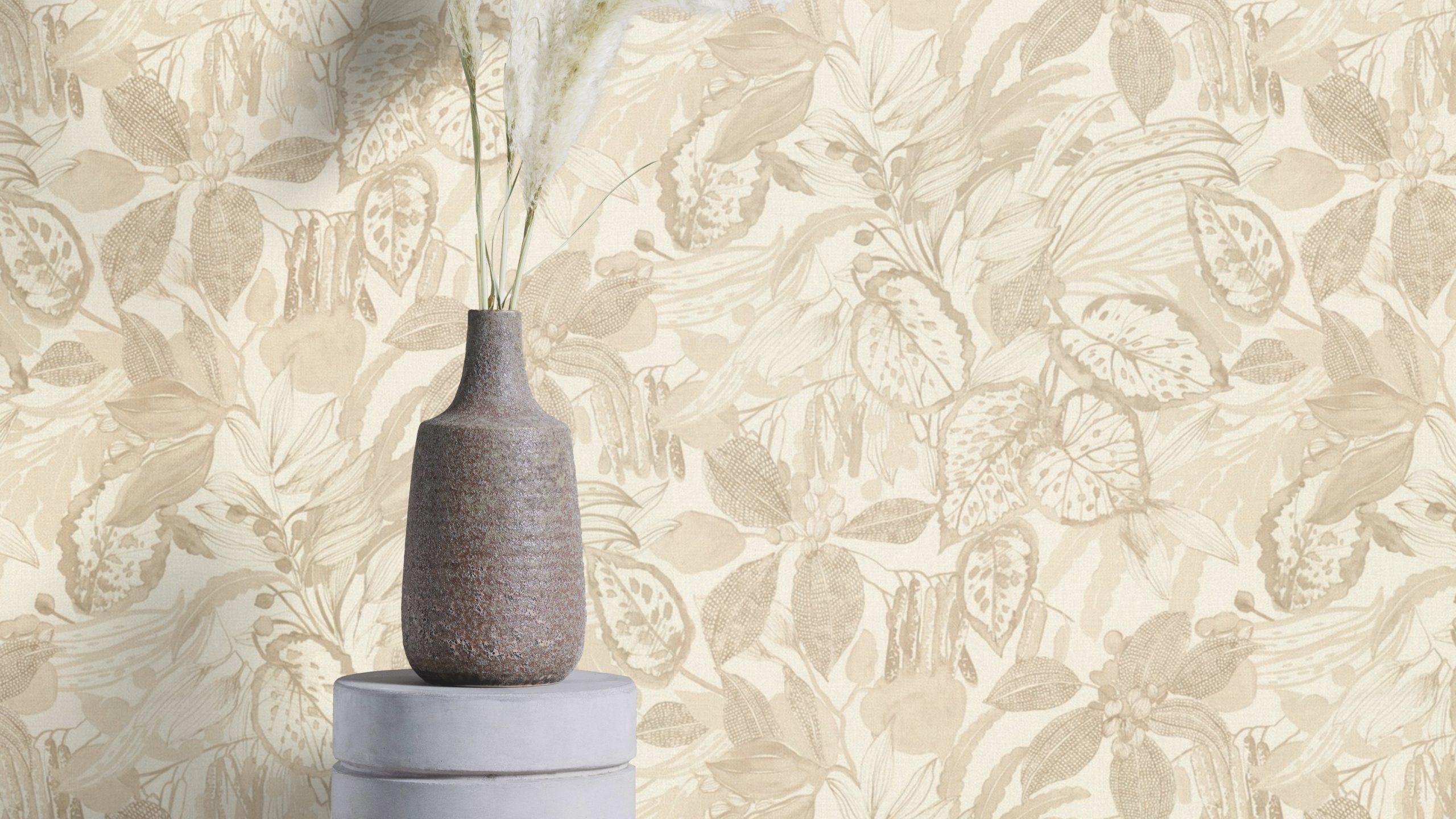 Papel mural con estampado floral con una variedad de delicadas plantas y hojas
