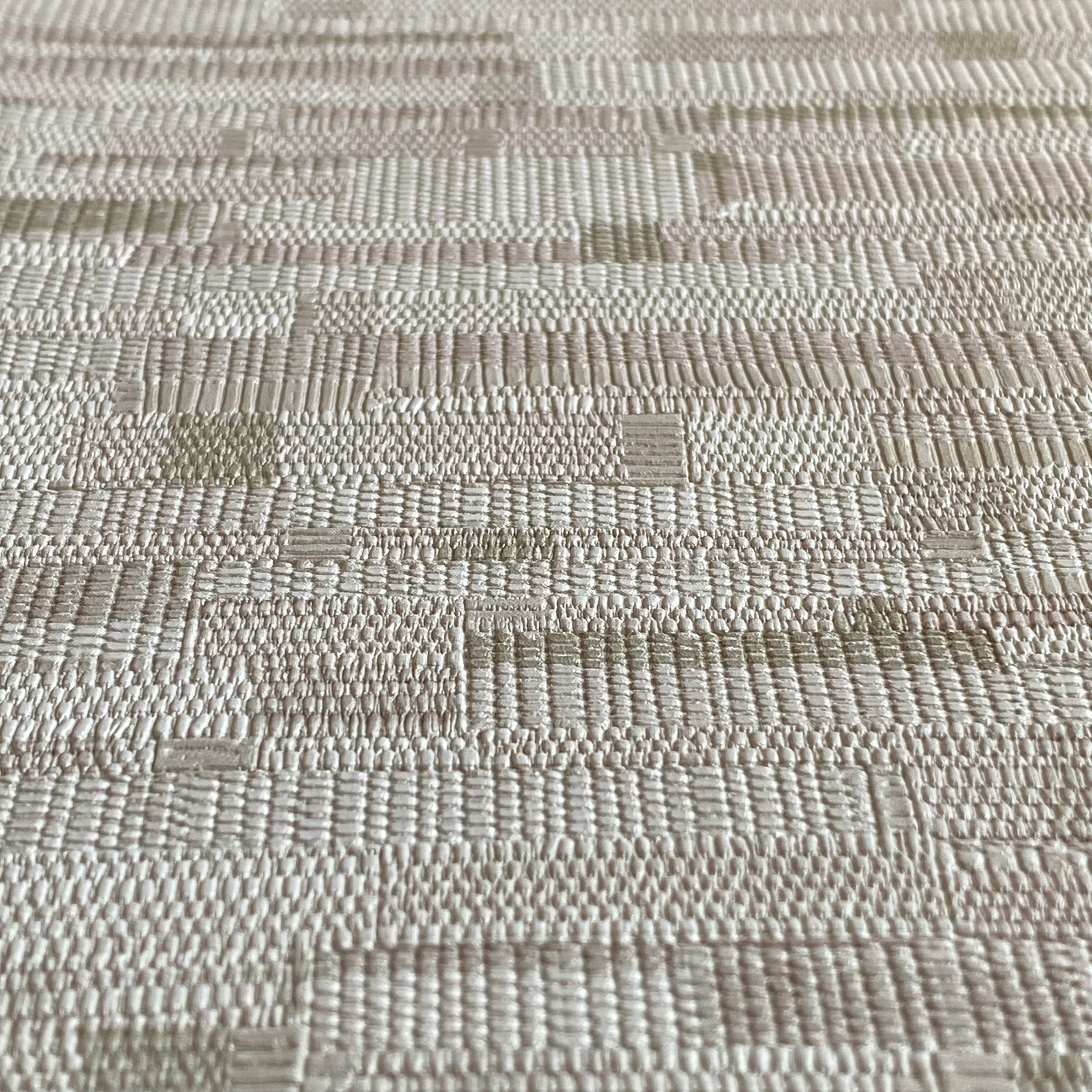 BELEM – un mosaico de hilos naturales fragmentados pero mezclados entre sí.  Este diseño aporta profundidad y movimiento. En colores beige.