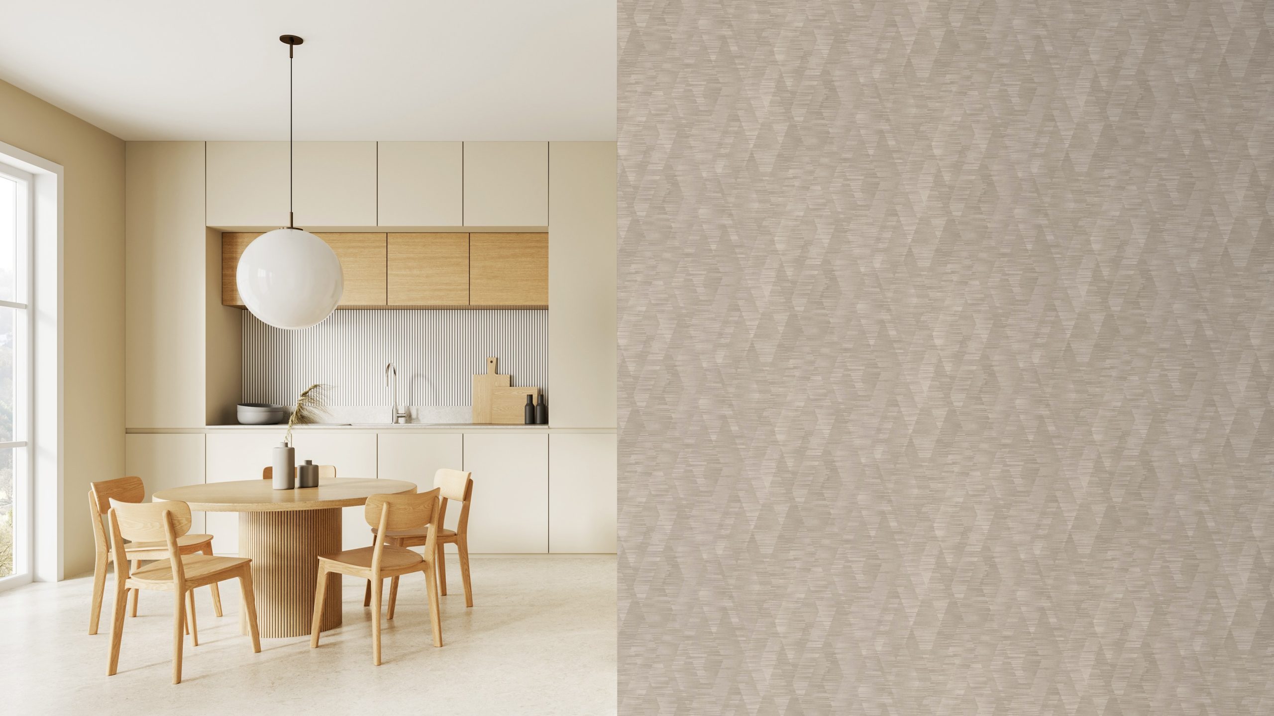 Papel mural con un patrón geométrico de rombos con finas líneas horizontales que le dan un aspecto texturizado
