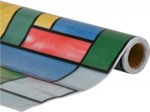 Pvc autoadhesivo con diseño de color tipo ROMBO AZUL, que deja pasar la luz